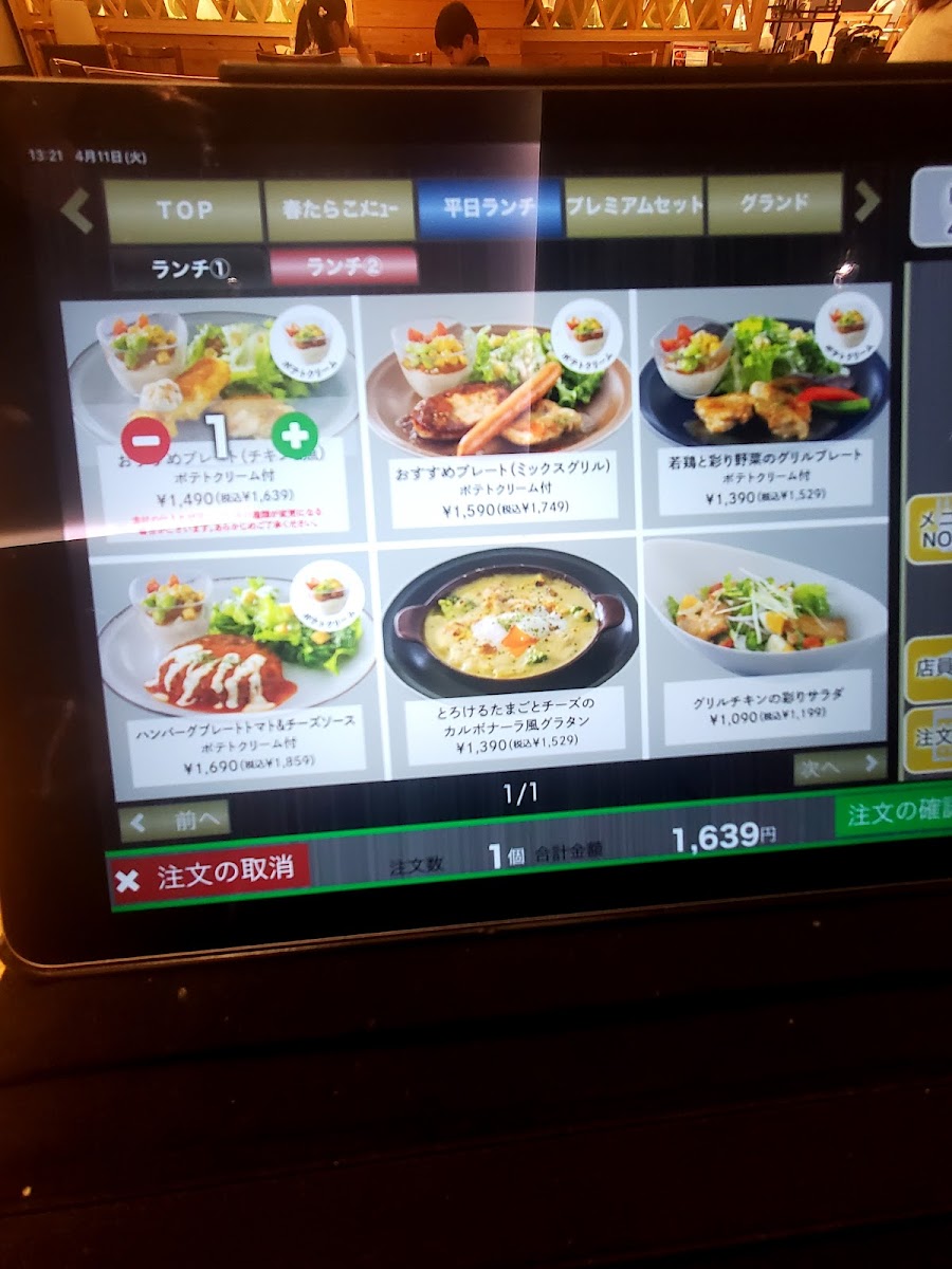 For lunch, there are a variety of sets to choose from, such as the ランチセット 鶏 (Lunch Set with Chicken) or the hearty ハンバーグランチ アリゴ付 (Hamburger Lunch with Aligot). The サラダセット (Salad Set) is an excellent light option for those who want to pair a fresh salad with their meal. The 若鶏と彩り野菜グリル (Grilled Young Chicken with Colorful Vegetables) is another great choice, providing a balanced, nutritious option.